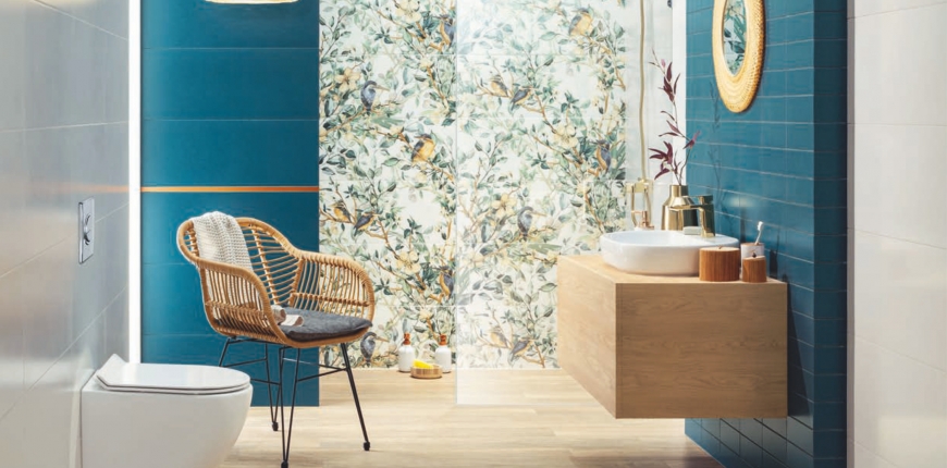 Potrzebę indywidualizacji aranżacji nowoczesnych łazienek doskonale rozumieją producenci płytek ceramicznych – coraz więcej jest kolekcji składających się z mocno zróżnicowanych wzorniczo produktów. Najnowsze propozycje składają się z elementów zarówno zupełnie gładkich, jak i fakturowanych, zestawów różnych formatów oraz kolorów. W komplecie mogą się znaleźć takie o wzorach graficznych oraz inspirowanych otaczającym nas światem, takich jak piasek nadmorskiej plaży czy zmarszczone fale morza. Połączenie płytek gładkich i wzorzystych to już za mało – coraz częściej kolekcja oferuje nam kilka deseni. Zróżnicowane może być również wzornictwo odnoszące się do materiałów, przy czym kontrasty są tu bardzo częstym zabiegiem stylistycznym – w jednym pakiecie znajdziemy płytki imitujące sękate deski oraz gładki kamień. Nierzadko są też odwołania do starych tradycji produkcji ceramicznych okładzin i ich pochodnych: w nawet najbardziej nowoczesnych zestawach znajdziemy zarówno płytki naśladujące wiekowe wzory mozaiki, jak i cementowe czy wytwarzane ręcznie barwne azulejos, a ostatnio także terazzo przypominające nasze poczciwe lastryko. Również stylizowane na grube kafle majolikowe, ale znacznie od nich cieńsze i najczęściej jednolite kolorystycznie okładziny od lat nie wychodzą z mody. Bez problemu znajdziemy też płytki z uproszczonymi geometrycznymi dekorami lub przeciwnie, niemal fotograficznymi wizerunkami pejzaży, detali architektonicznych czy fragmentów miast. W zestawieniach obowiązuje dowolność, byle cała kompozycja była spójna.